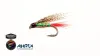 This is an unusual fly among Bergman’s Wet Flies in “Trout”. His recipe calls for a floss wing and beard. In J. Edson Leonard it is a quill wing with green and a center stripe of red.
