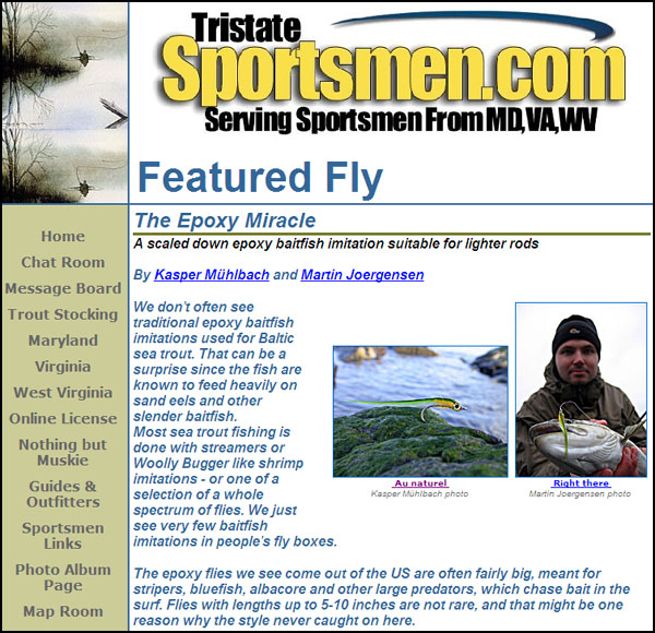 The thing is that this web site has a Featured Fly. very nice concept with a new pattern now and then. Only problem is, that their featured fly isn't theirs! It's ours - or rather Kasper Mühlbach's. "Their" article Epoxy Miracle is bit-by-bit exactly the same as ours because they have simply copied the HTML-code from our page and pasted it into their own. The links still point to GFF!